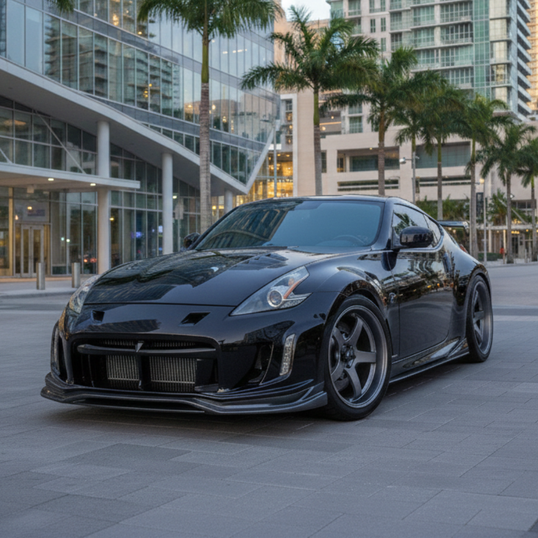 The Varis Arising-II Style Front Bumper for the Nissan 370Z (Z34) is a precision-engineered upgrade that blends performance with aggressive styling. It lets you reuse the OEM DRL modules from the facelifted 370Z or choose sleek air ducts that integrate perfectly into the DRL openings. Designed to optimize aerodynamics, the bumper improves stability and handling at speed. Each unit is crafted for an exceptional fit and finish, made from high-quality FRP.