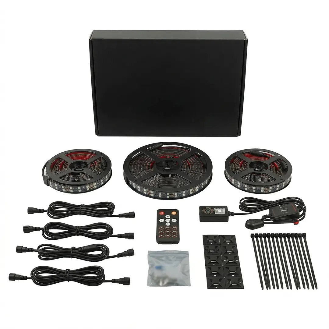 - 6 dual-row RGBIC strips — 2×90cm front, 2×90cm rear, 2×160cm sides for full perimeter coverage